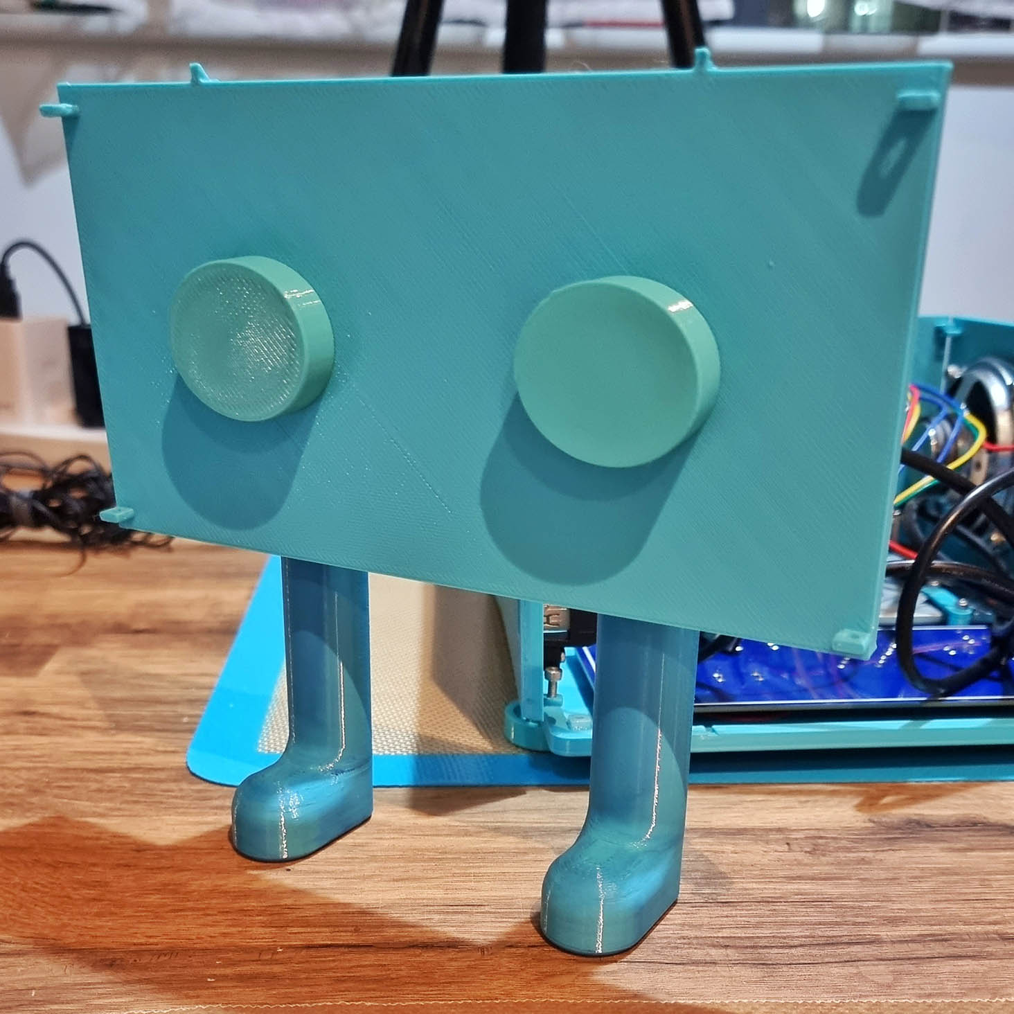 Mechanical Engineering & CAD: Designed entirely in Autodesk Fusion 360, the enclosure was heavily optimized for the realities of 3D printing. By utilizing smart print orientations, all outward-facing surfaces printed smoothly against the build plate. The components assemble via friction fit and removable screws, allowing for complete non-destructive disassembly. To give the piece its characteristic charm, the limbs were printed in flexible TPU and reinforced with internal armature wire, allowing for full pose-ability.