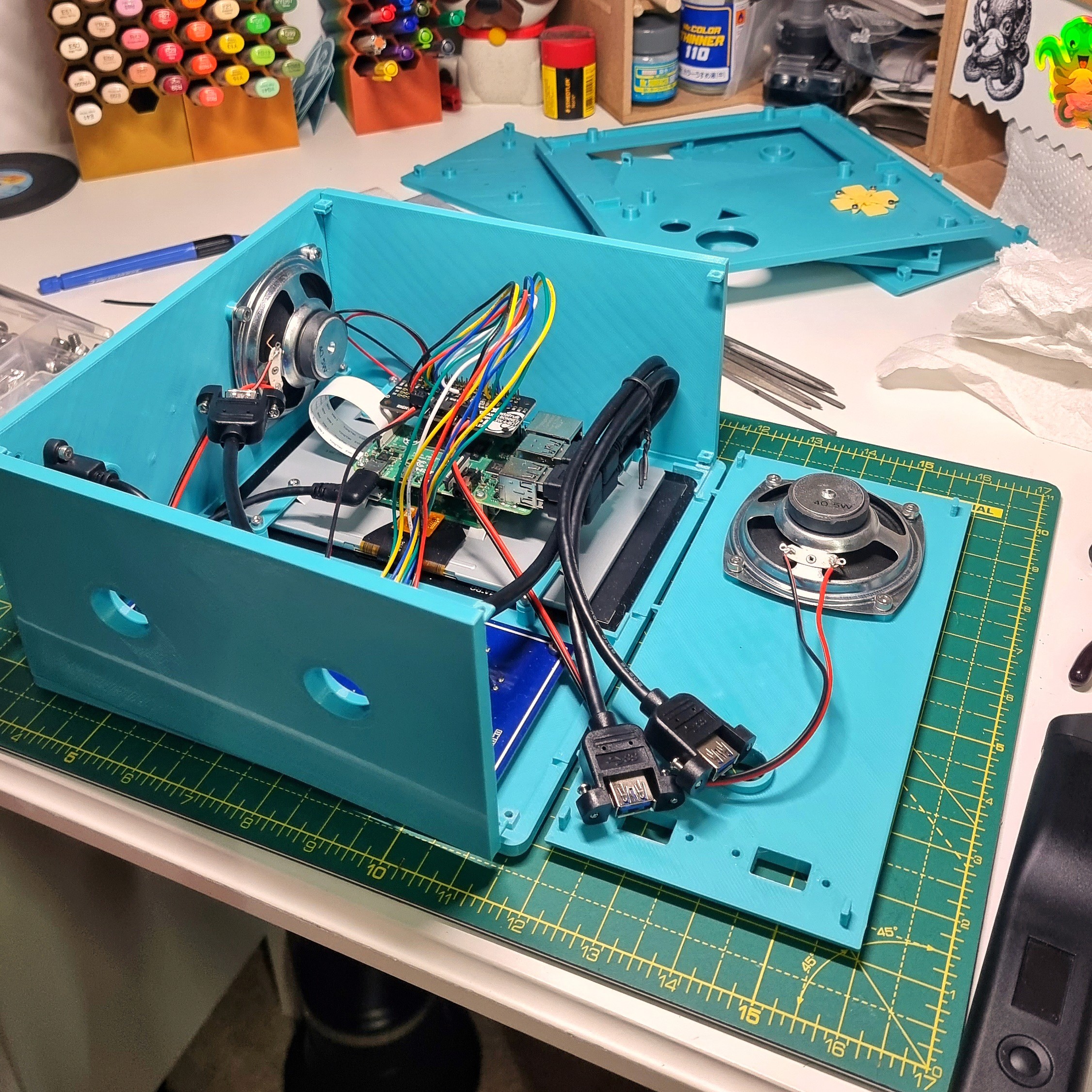 Systems Integration: Packaging a Raspberry Pi 4, a large touchscreen display, I2S speakers, an amplifier, and custom button arrays into a highly compact, aesthetically accurate shell without causing thermal throttling or cable-management nightmares.