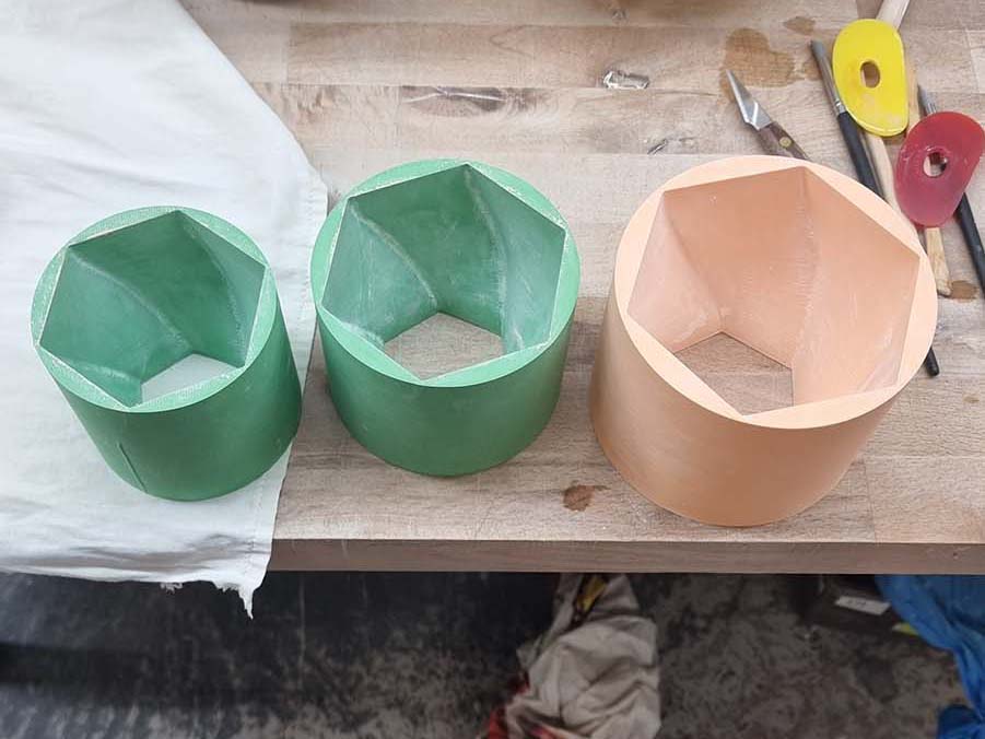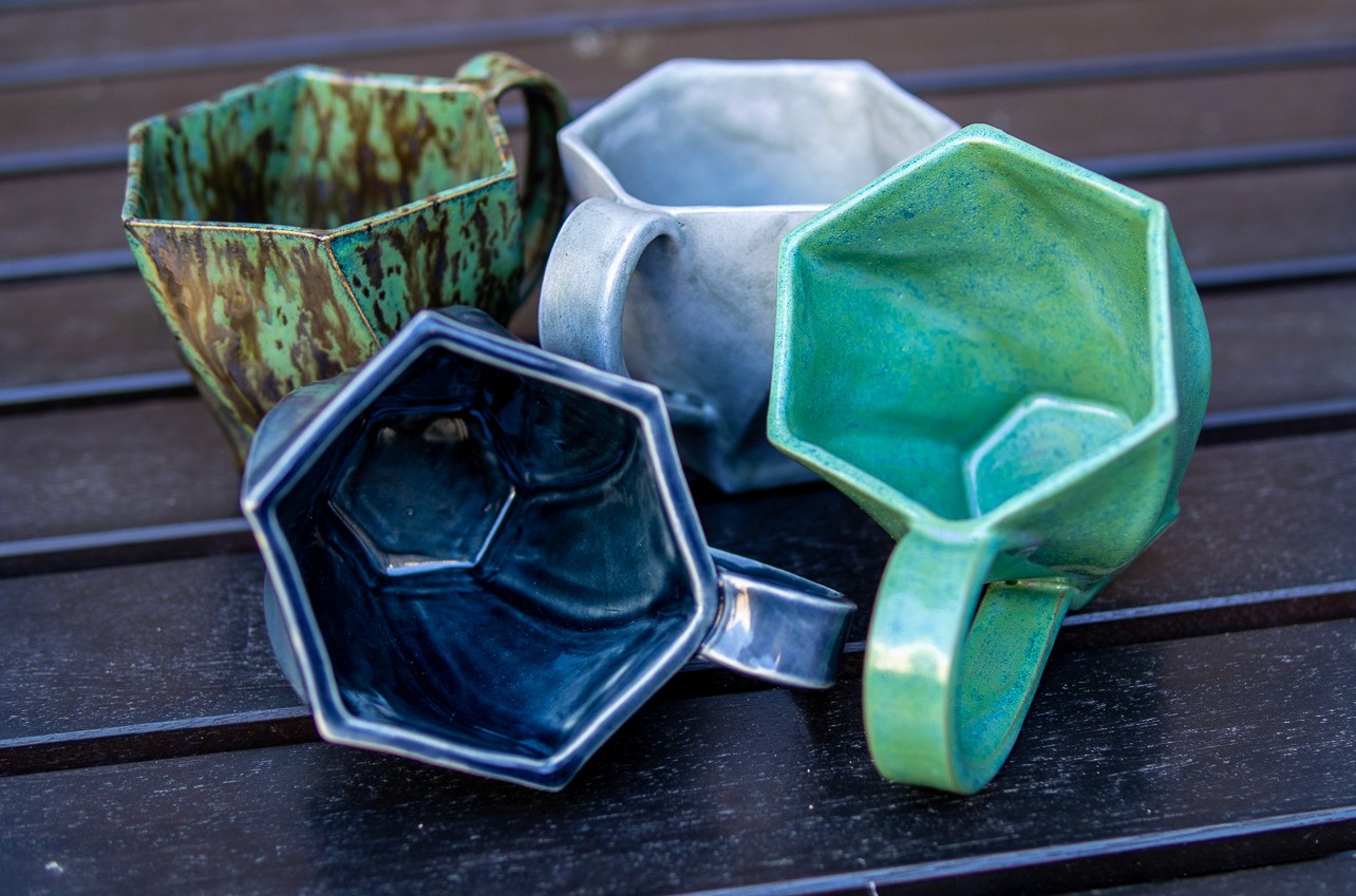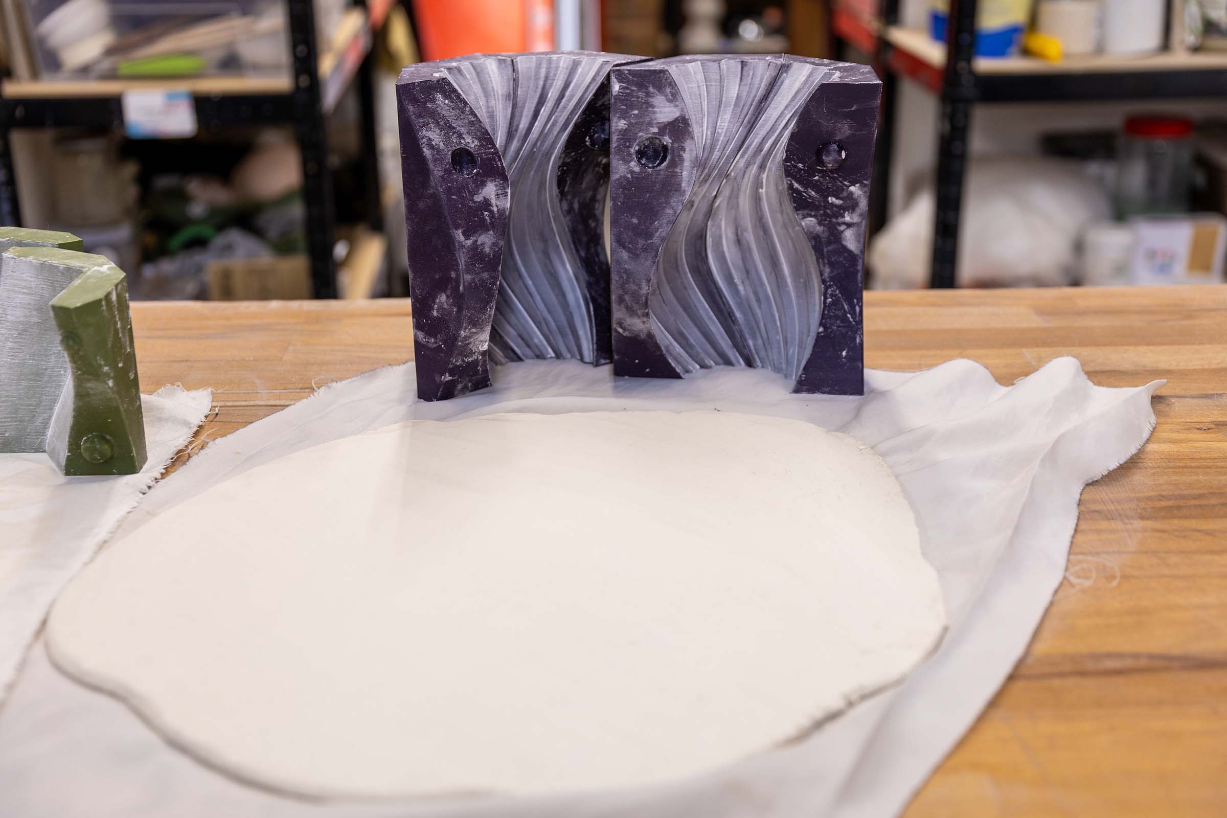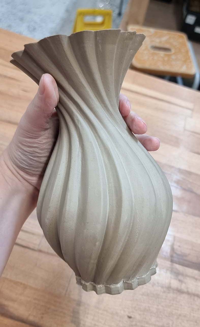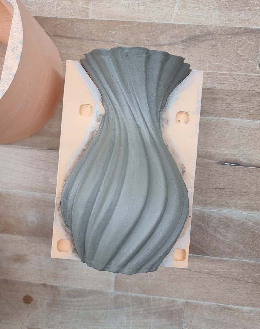 Developing 3D Printed Slab Press Molds: The key focus of my R&D, my goal was to bring complex CAD geometries into the physical world without the mess of slip casting. To do this, I developed a unique slab press molding workflow. By printing multi-part molds based on complex parametric designs, I discovered novel ways to form flat clay slabs into intricate, gravity-defying vessels. One of my finished pieces using this method was featured in Hackspace Magazine.