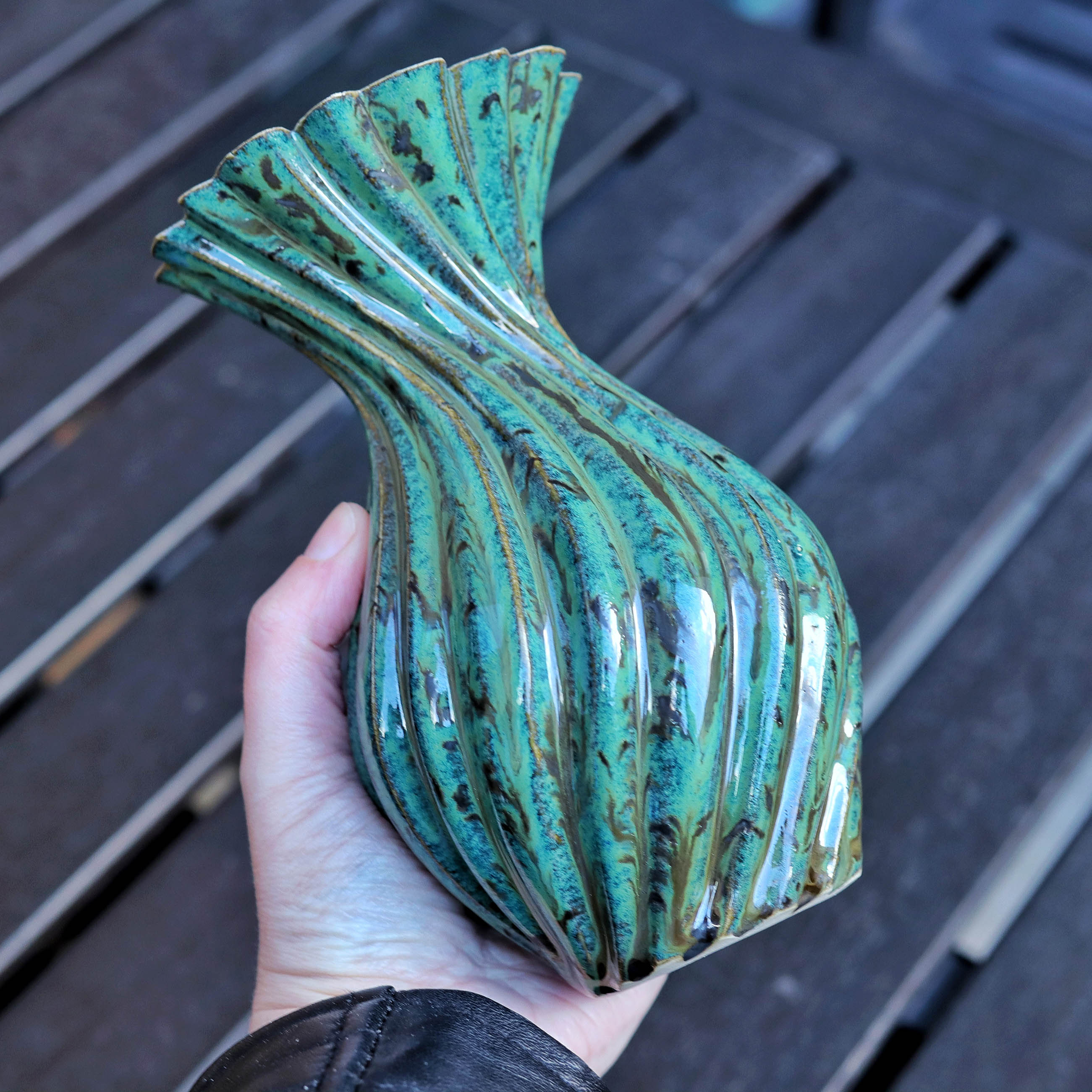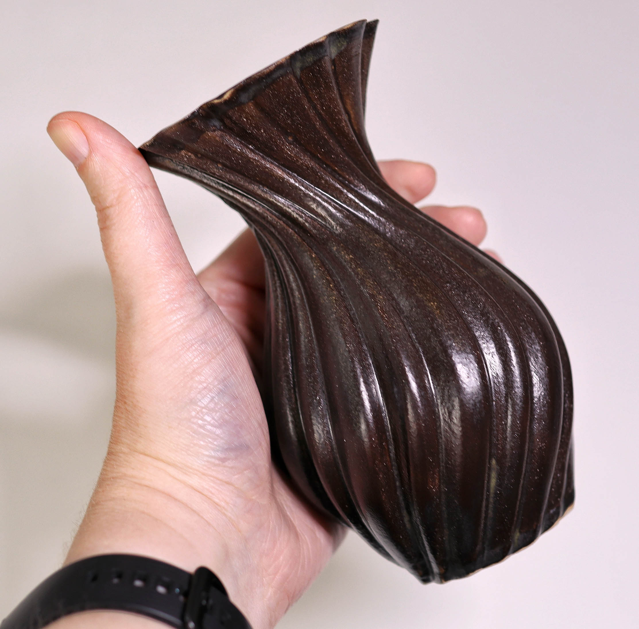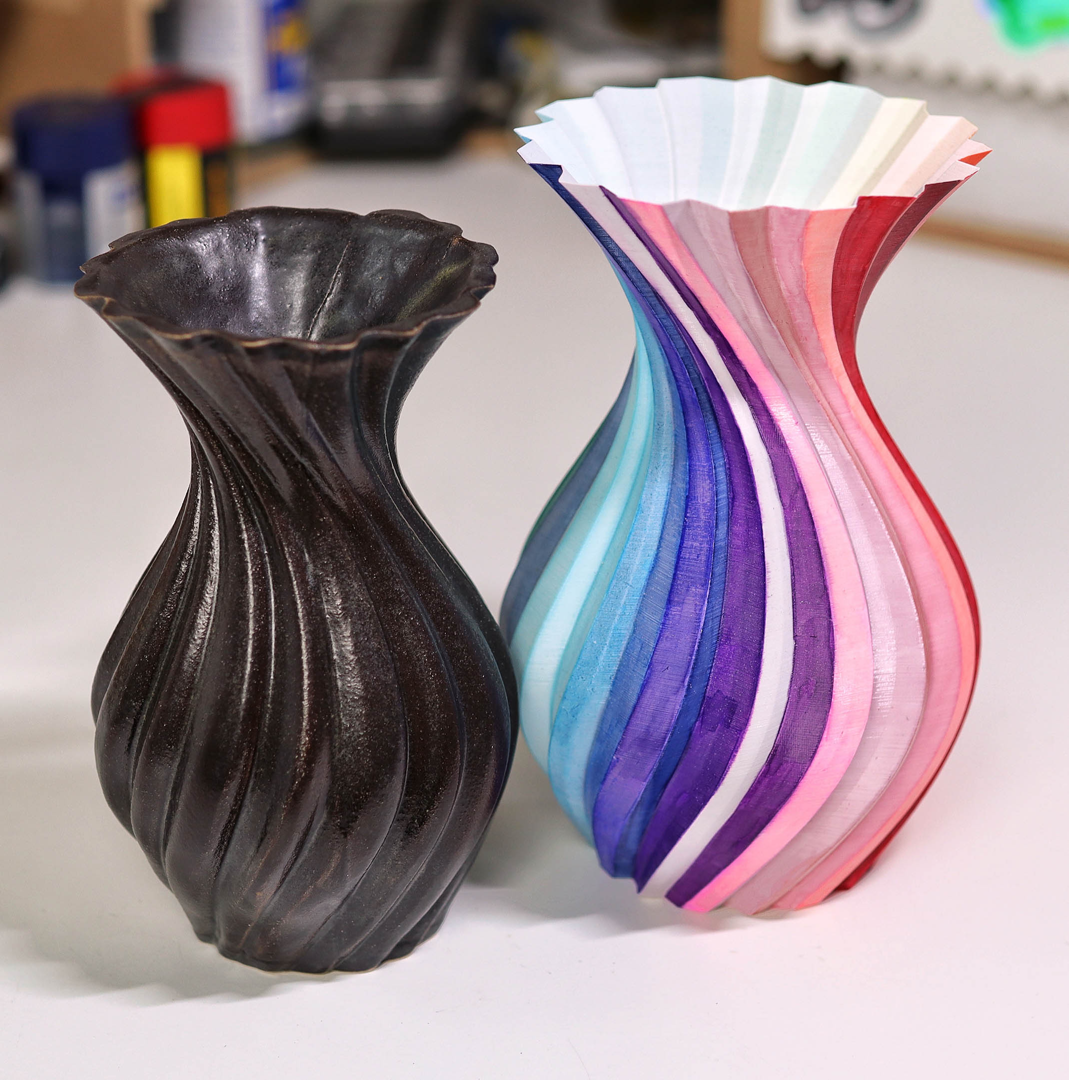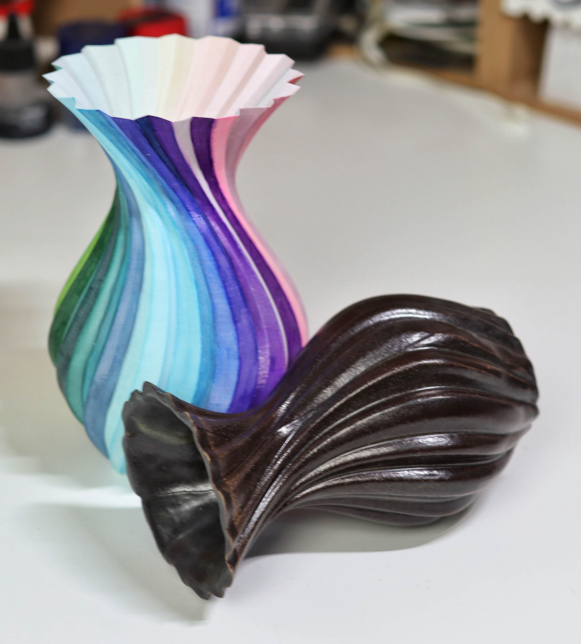 Developing 3D Printed Slab Press Molds: The key focus of my R&D, my goal was to bring complex CAD geometries into the physical world without the mess of slip casting. To do this, I developed a unique slab press molding workflow. By printing multi-part molds based on complex parametric designs, I discovered novel ways to form flat clay slabs into intricate, gravity-defying vessels. One of my finished pieces using this method was featured in Hackspace Magazine.