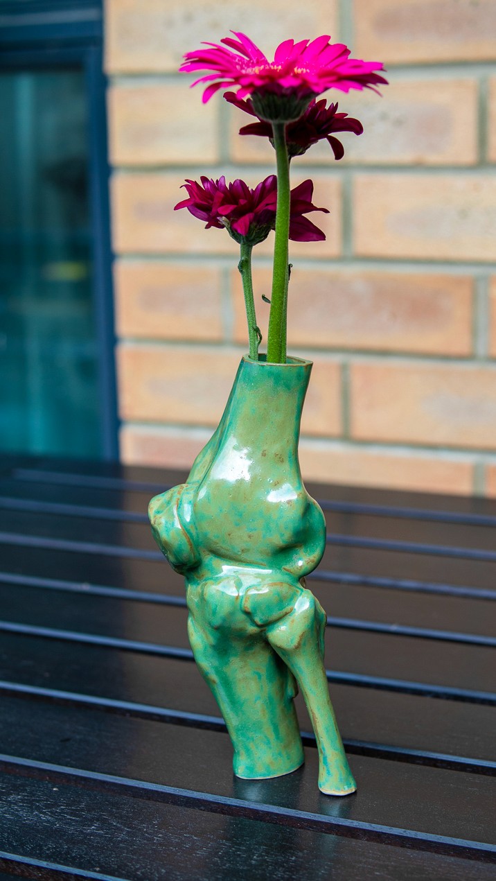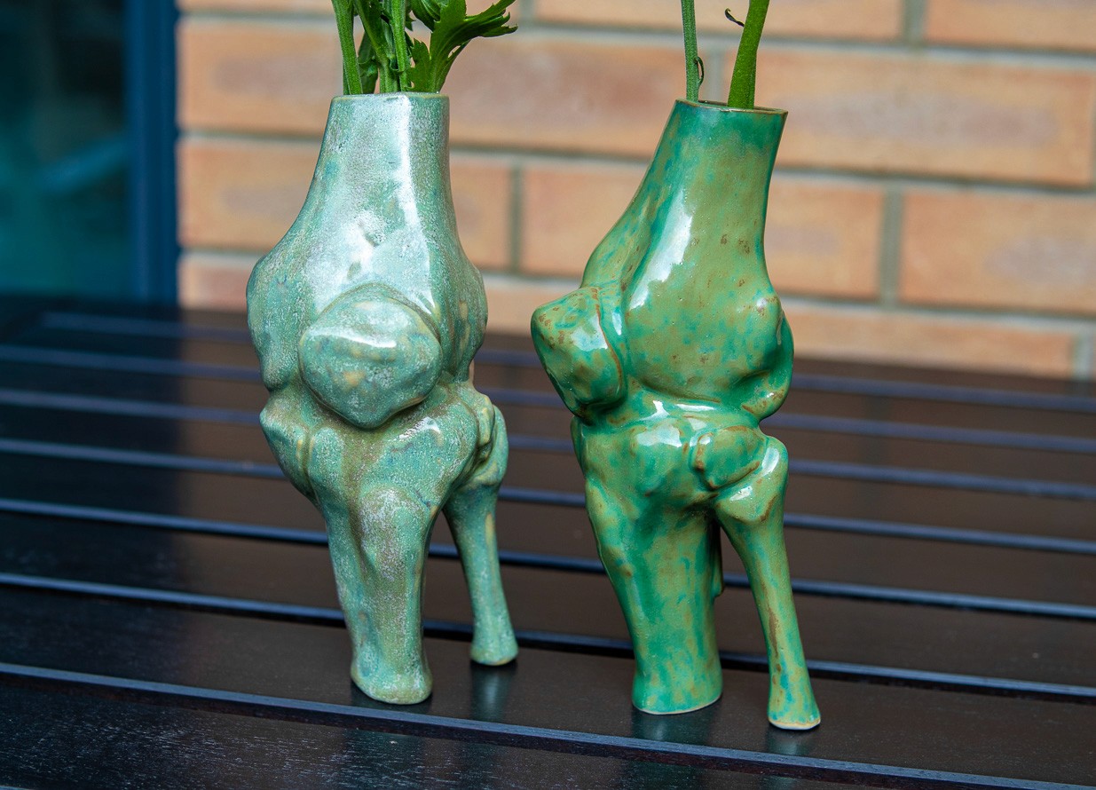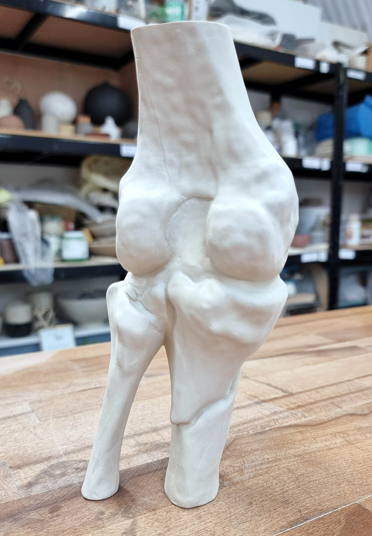 Medical Imaging to Porcelain (Slip Cast Bone Vase): An unexpected exploration of the grant was translating my own medical CT scans into a physical porcelain sculpture, brought about by a sudden accident shortly after application.