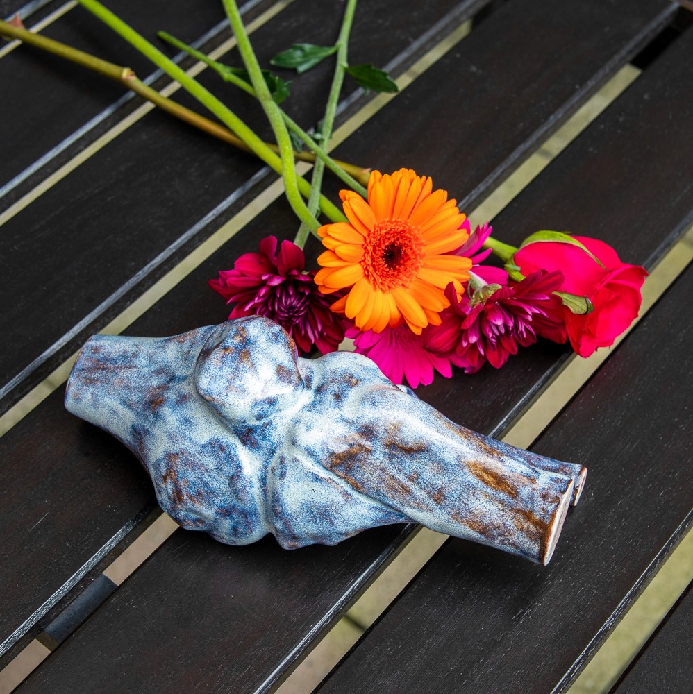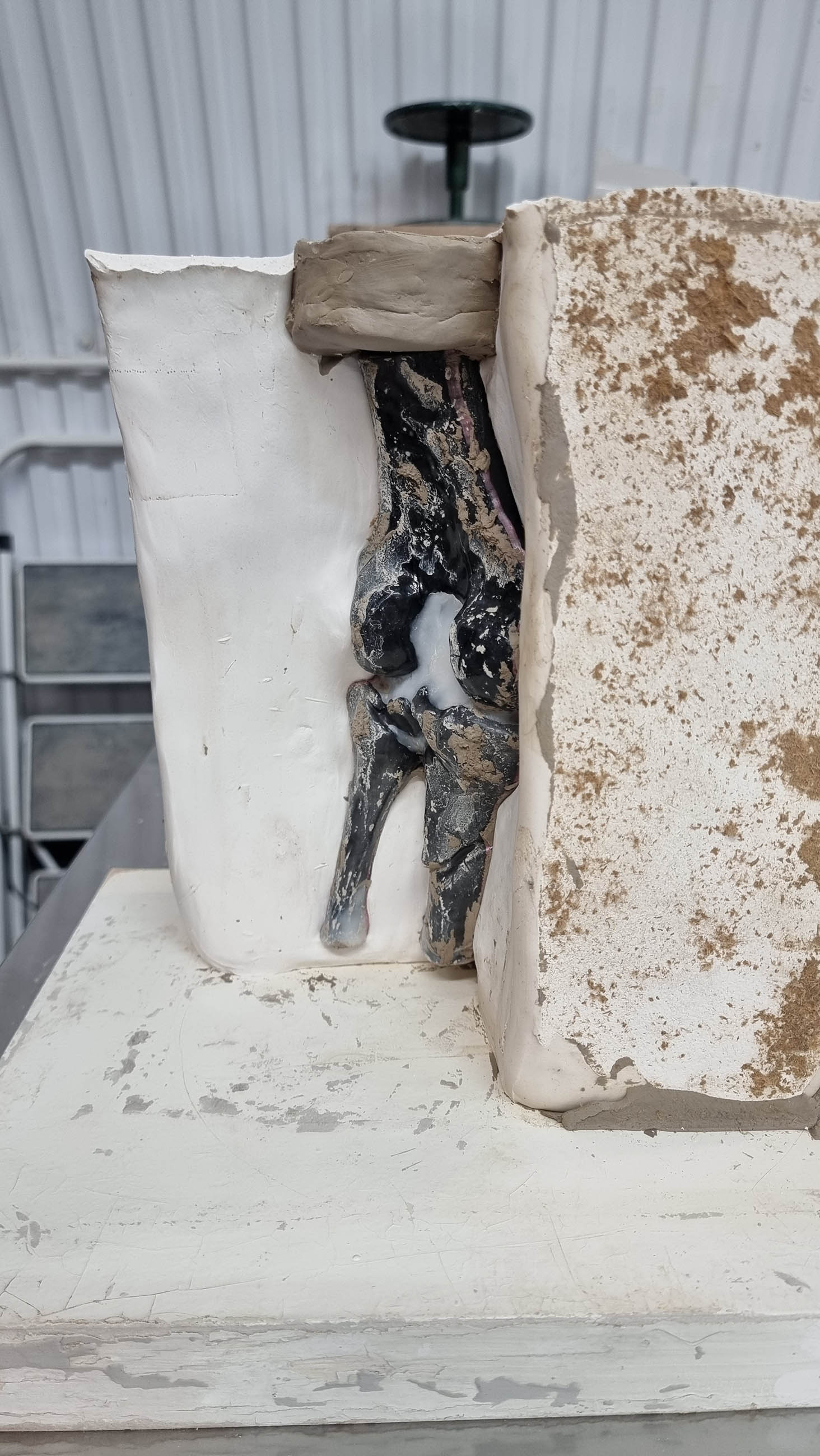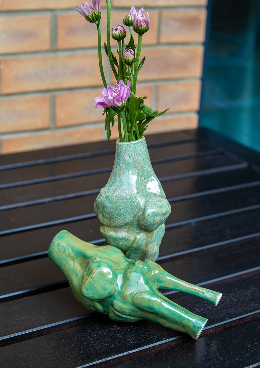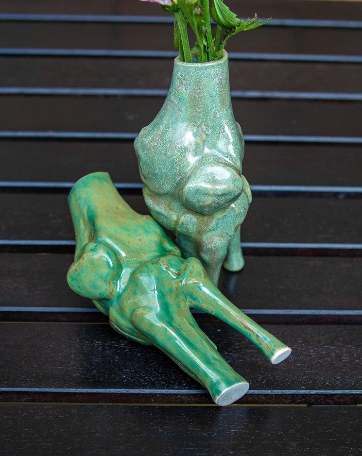 Medical Imaging to Porcelain (Slip Cast Bone Vase): An unexpected exploration of the grant was translating my own medical CT scans into a physical porcelain sculpture, brought about by a sudden accident shortly after application.