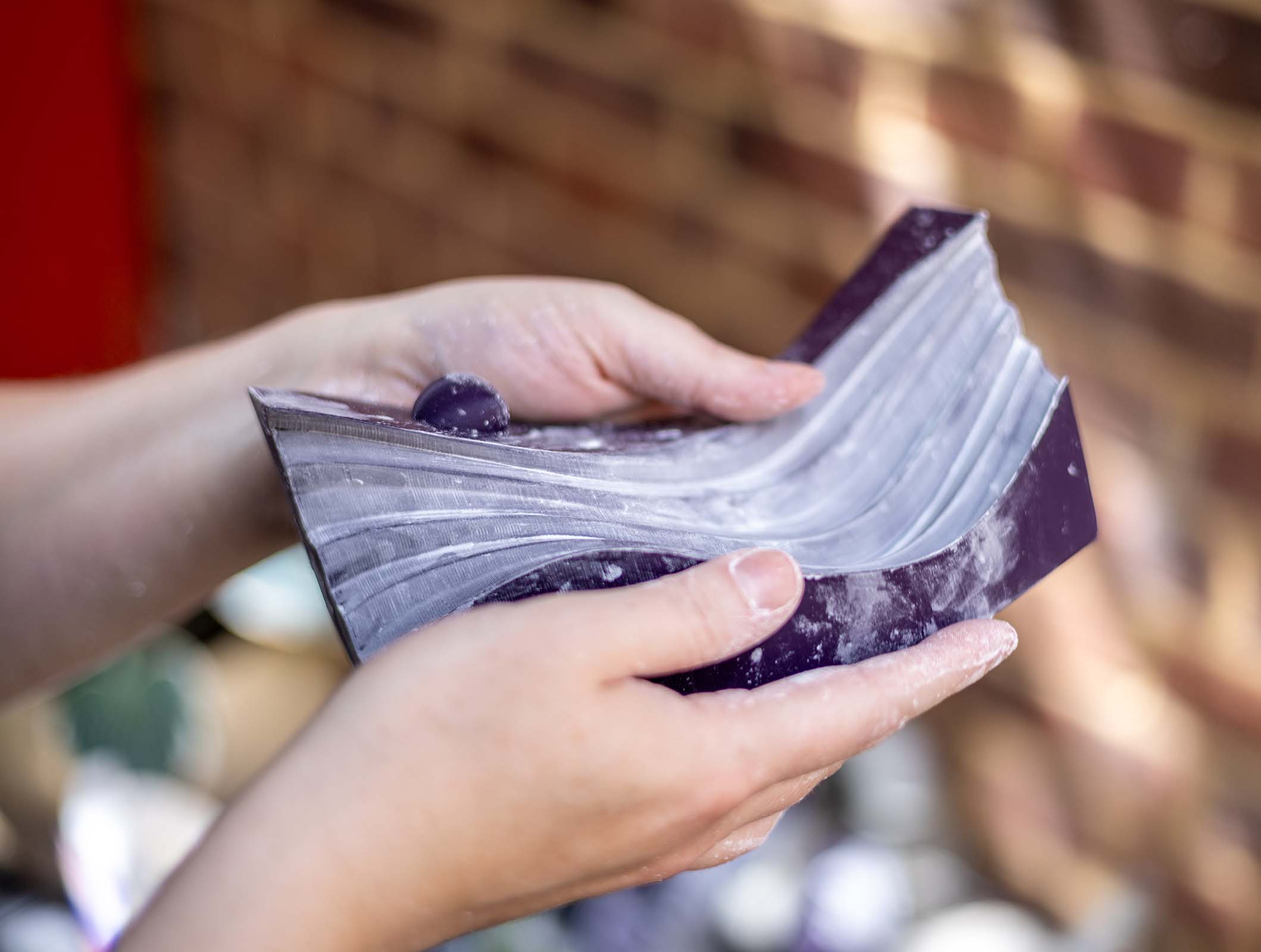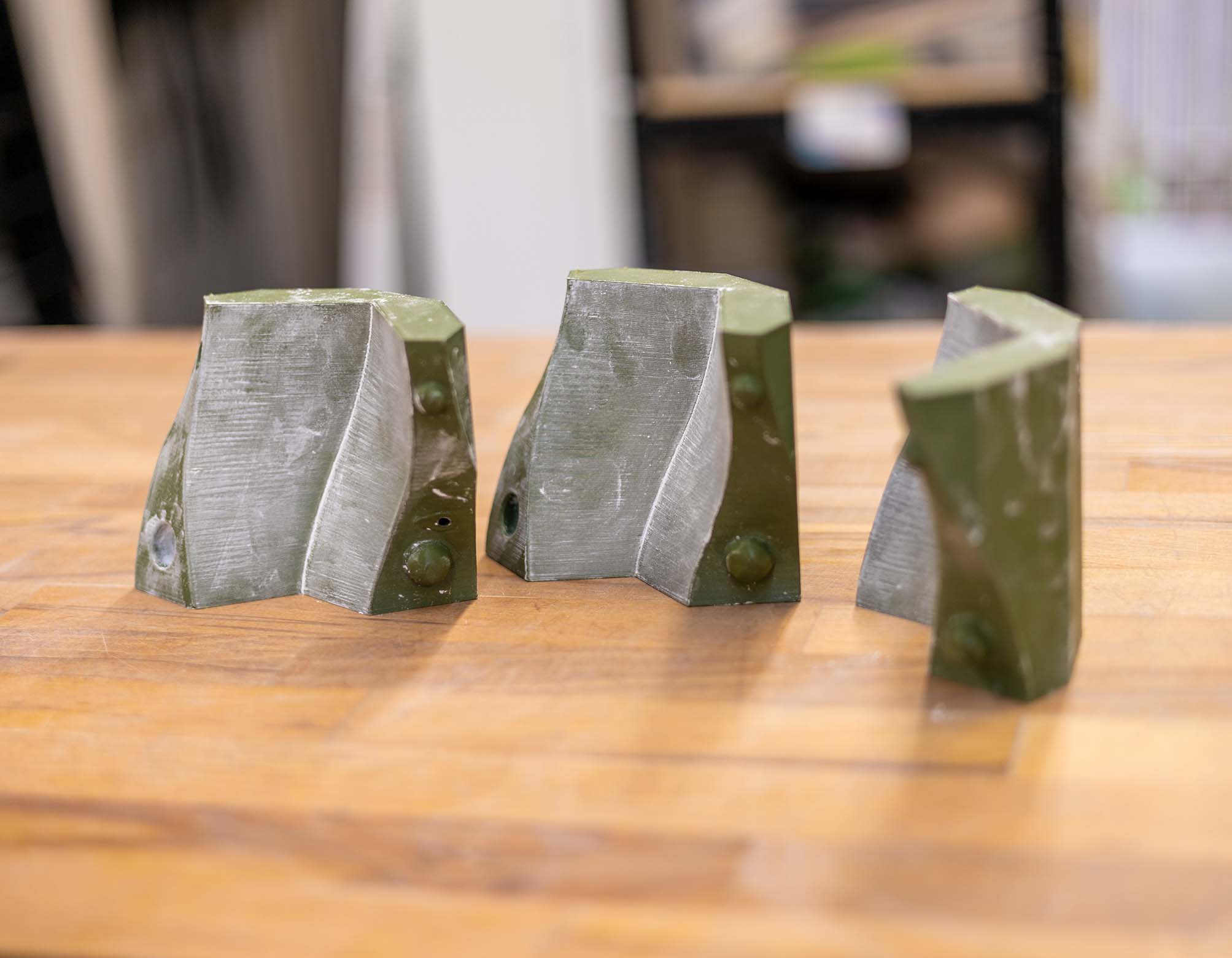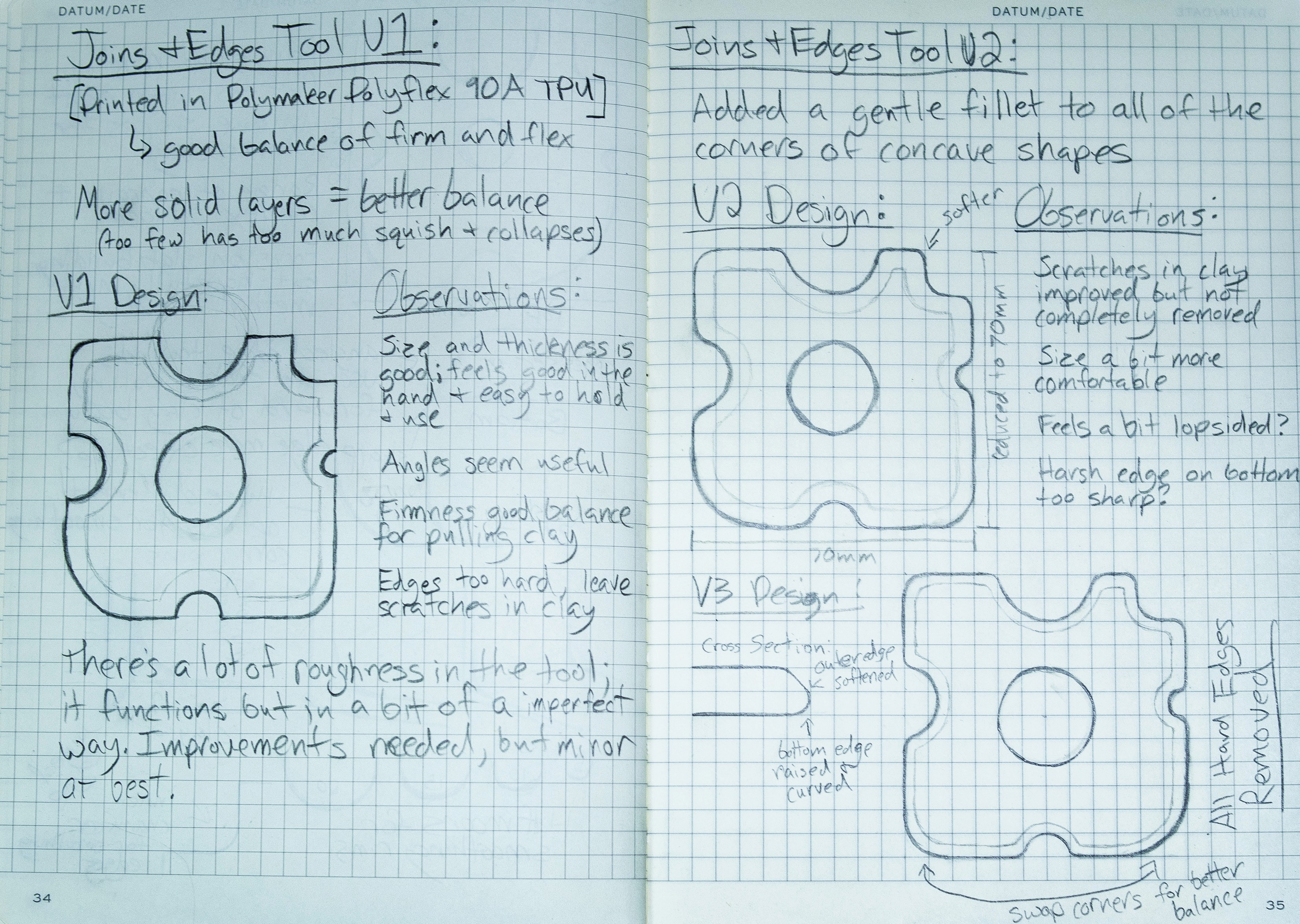 The Edges and Joins Tool: Printed in Polymaker Polyflex TPU (90A shore hardness), this tool features various curves for smoothing slab joins and softening 90-degree edges, striking the perfect balance of firmness and flexibility.