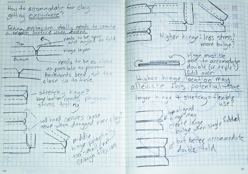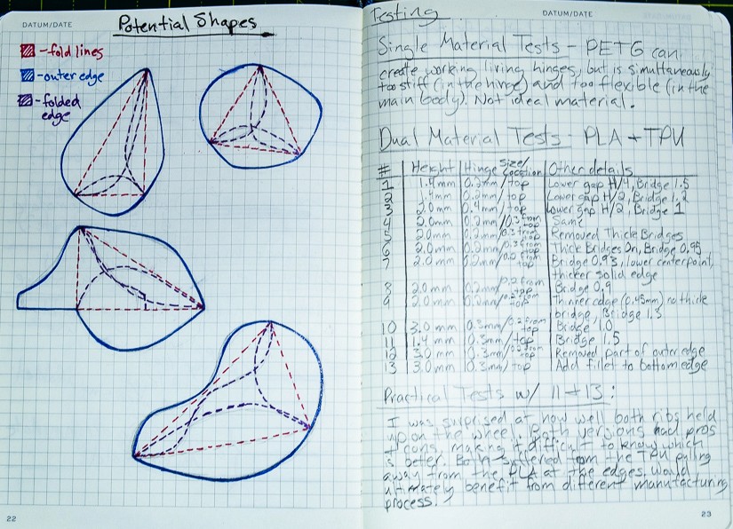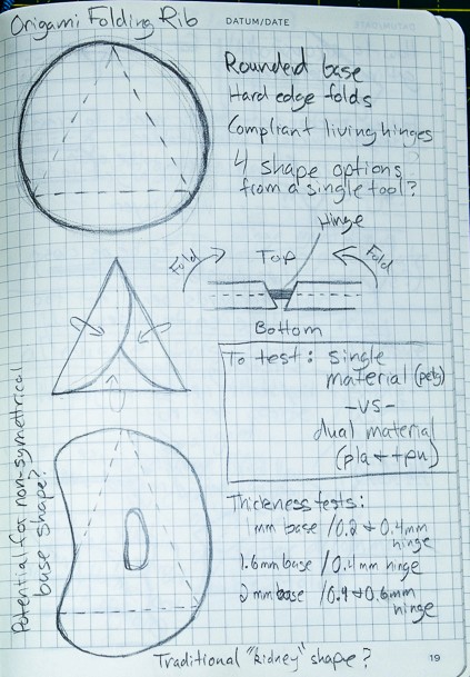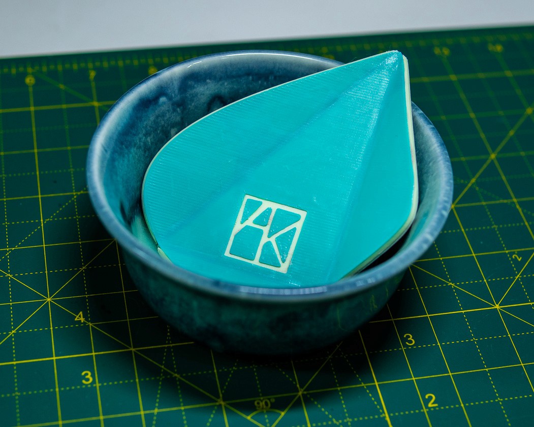 The Origami Folding Rib: A modular, transforming tool designed to reduce single-use implements. Through rigorous material prototyping, I engineered a folding FDM-printed design that functions beautifully as a rib, scraper, and finishing tool on the pottery wheel.