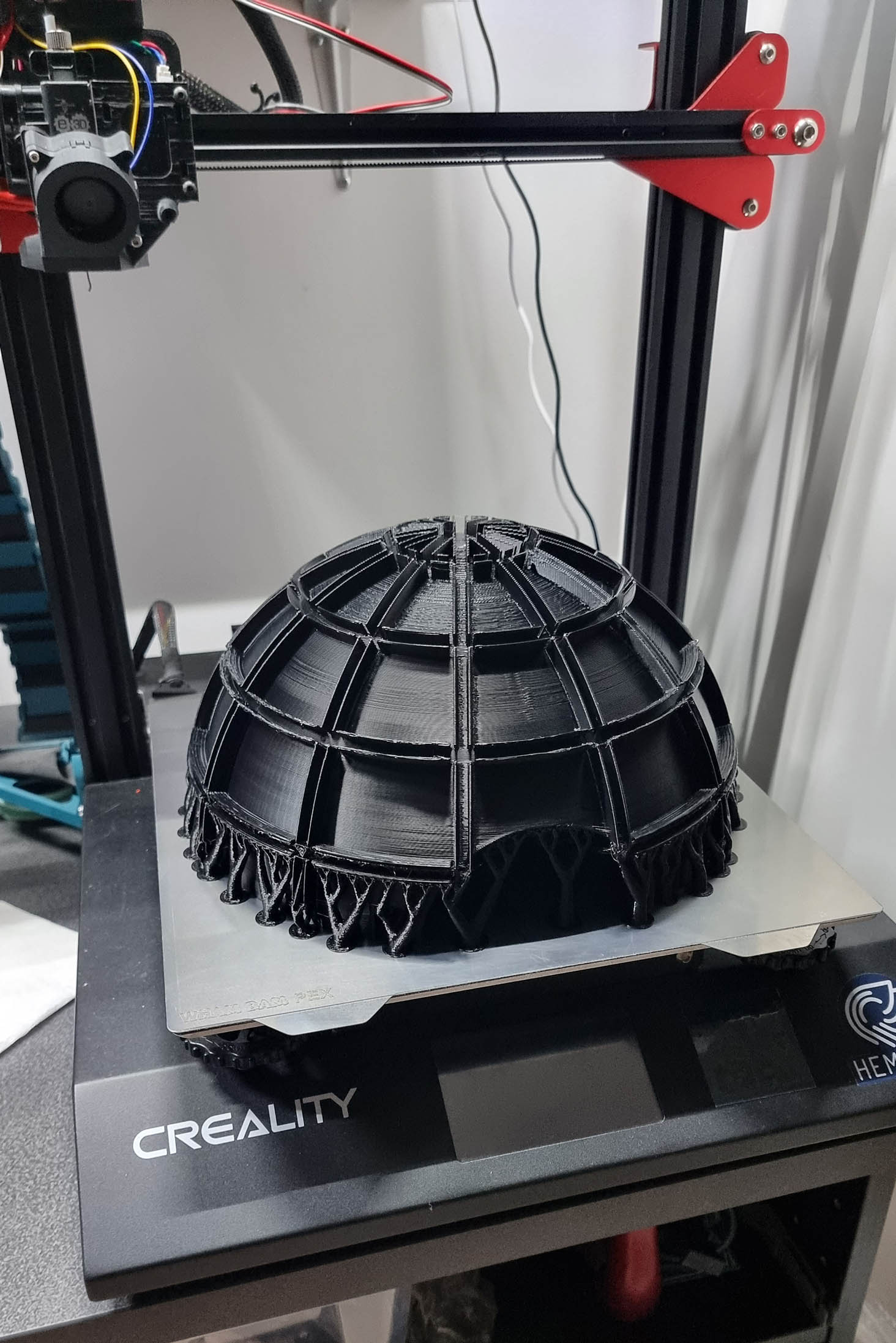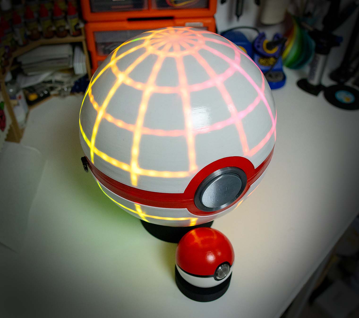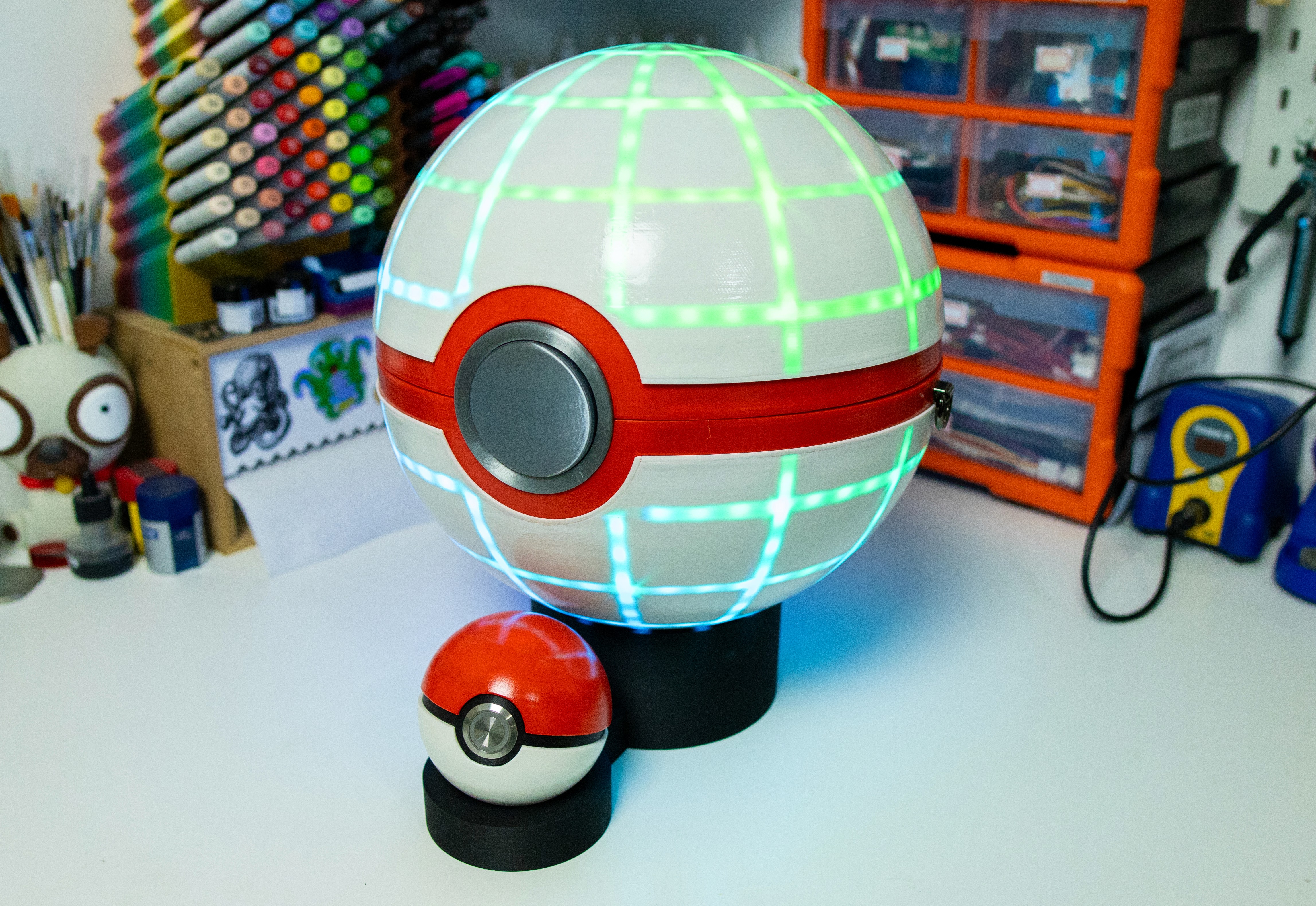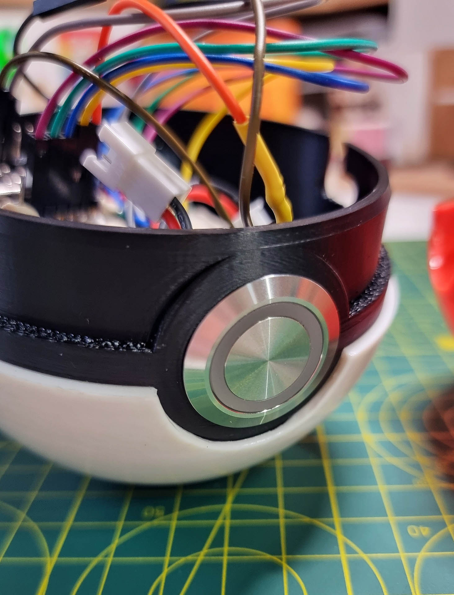 A fully functional and almost completely FDM 3D printed shoulder bag in the shape of the iconic Dynamax Ball from Pokemon Sword and Shield. The project features wireless networking, 3D mapped LEDs, and custom mechanical engineering.