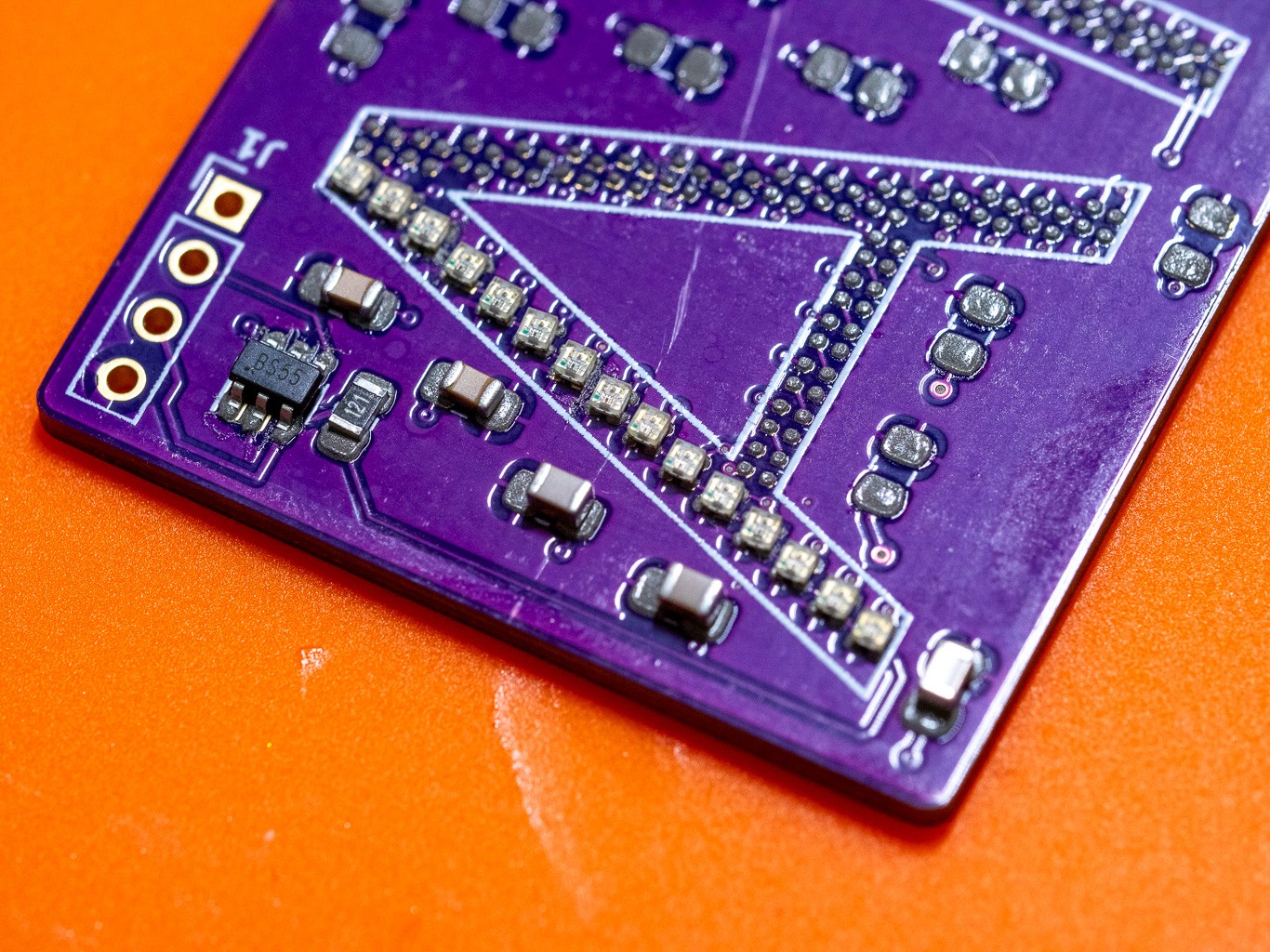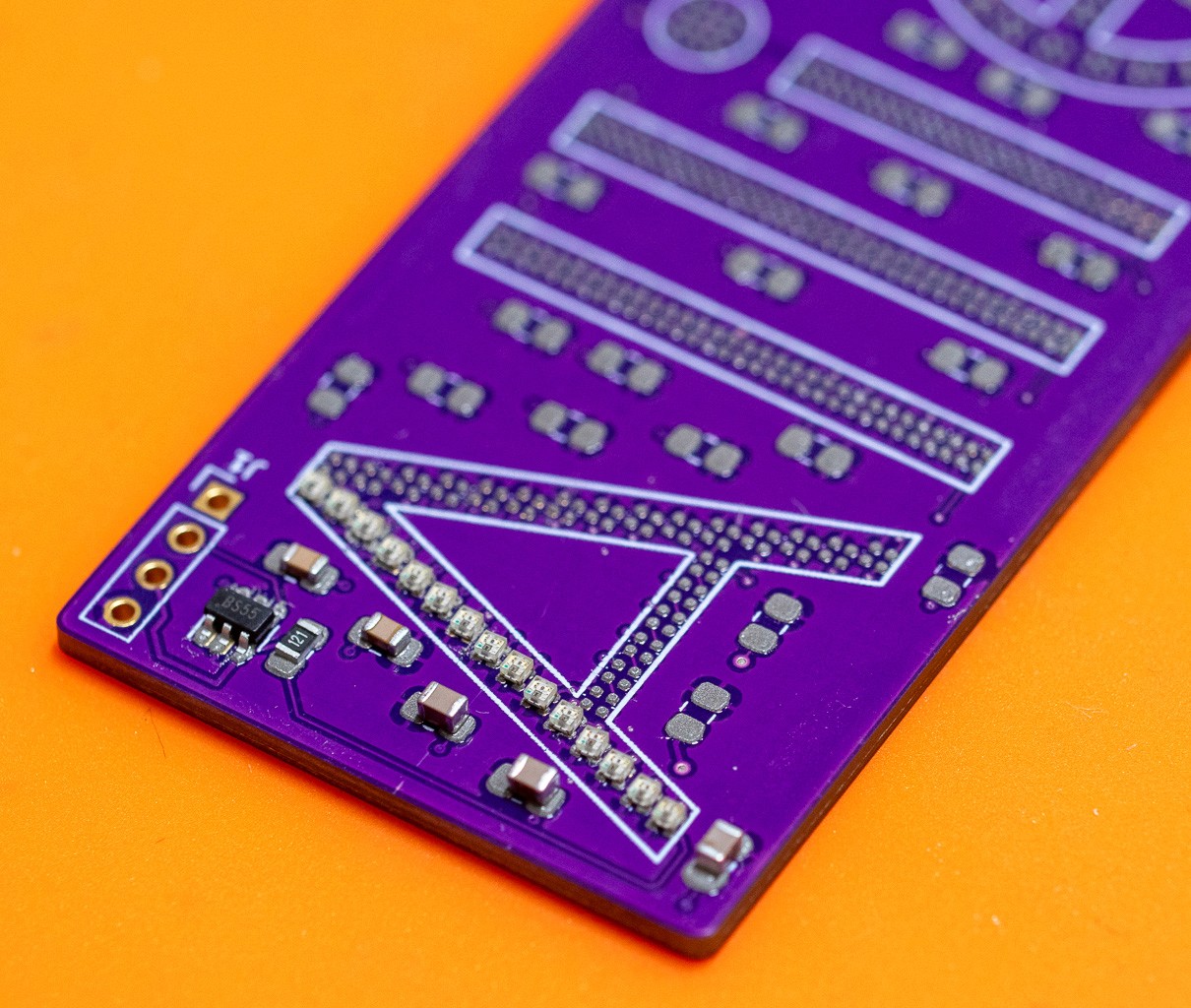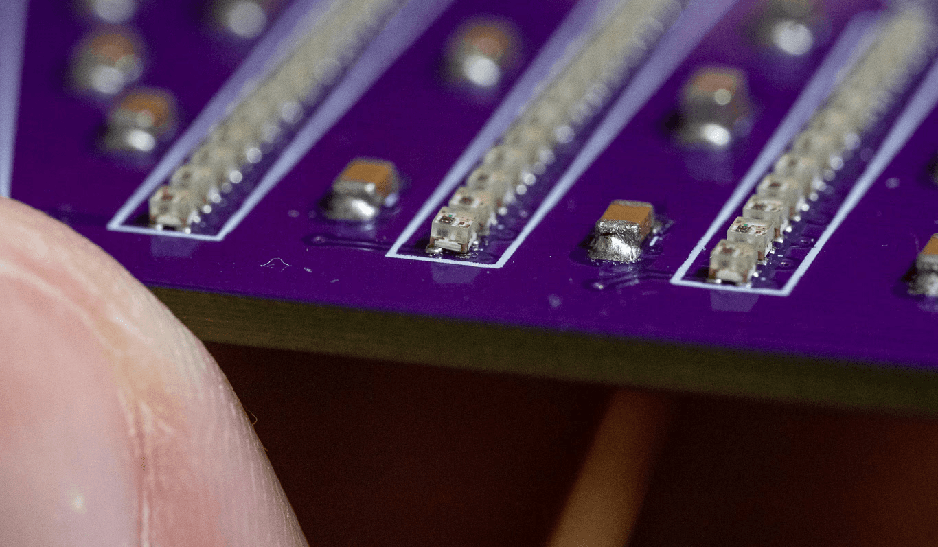 Custom PCB Design & Surface Mount Fabrication: Partnering with PCBWay, I designed my first custom printed circuit board for surface mount components. To maximize resolution, I selected Xinglight XL-1010RGBC-WS2812Bs—the smallest individually addressable LEDs available at the time.