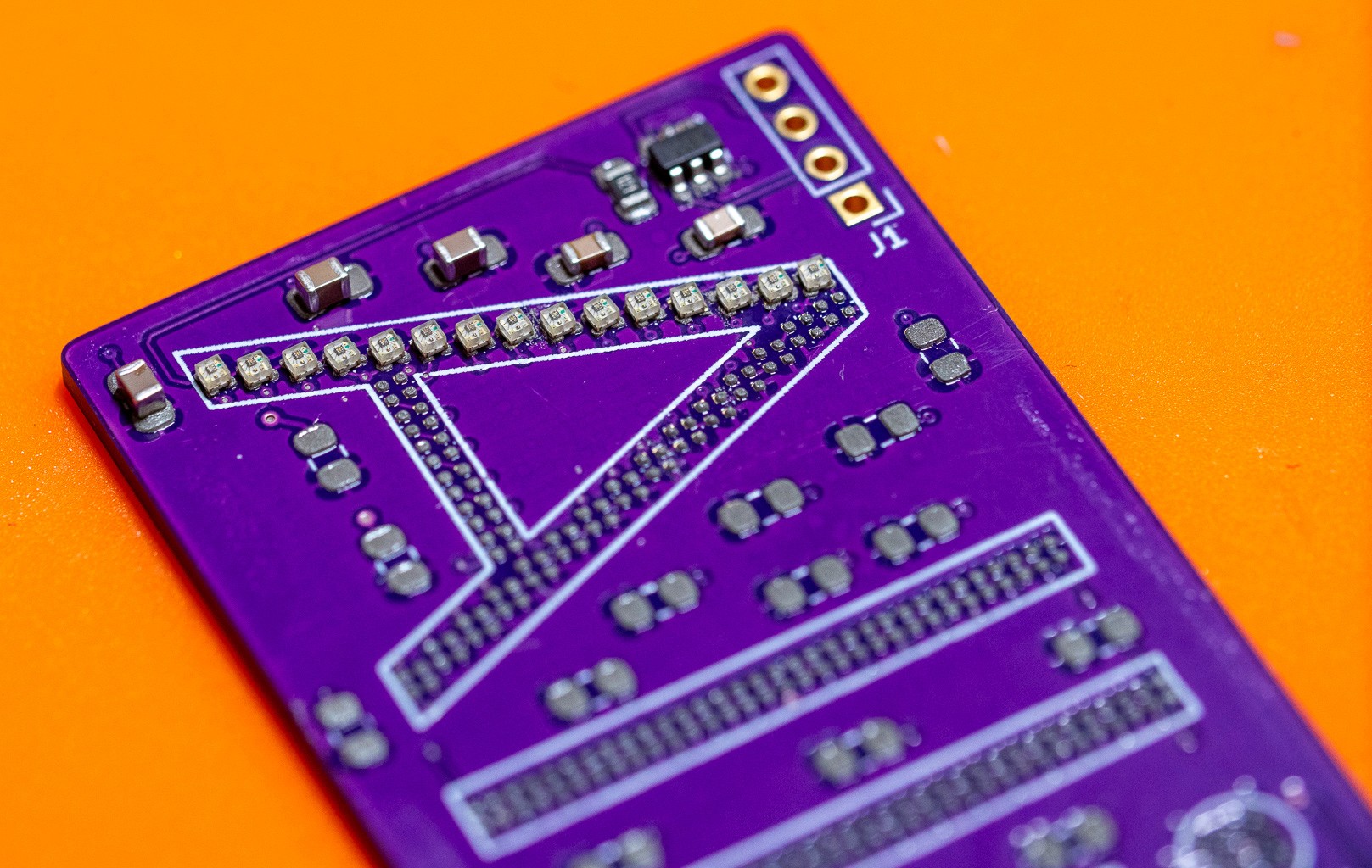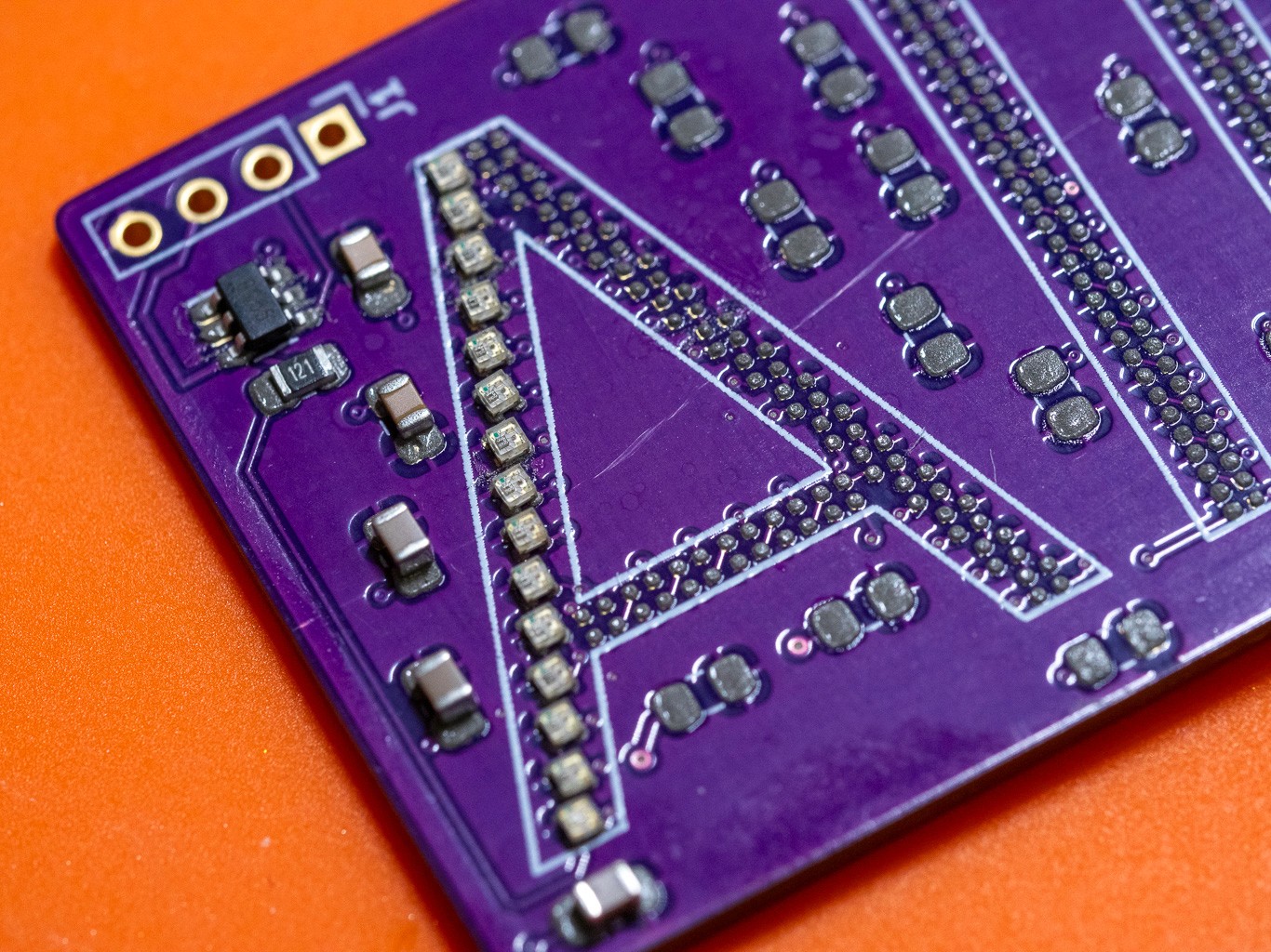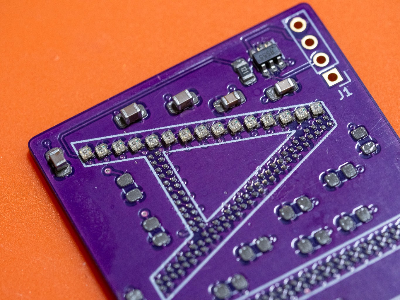 Custom PCB Design & Surface Mount Fabrication: Partnering with PCBWay, I designed my first custom printed circuit board for surface mount components. To maximize resolution, I selected Xinglight XL-1010RGBC-WS2812Bs—the smallest individually addressable LEDs available at the time.