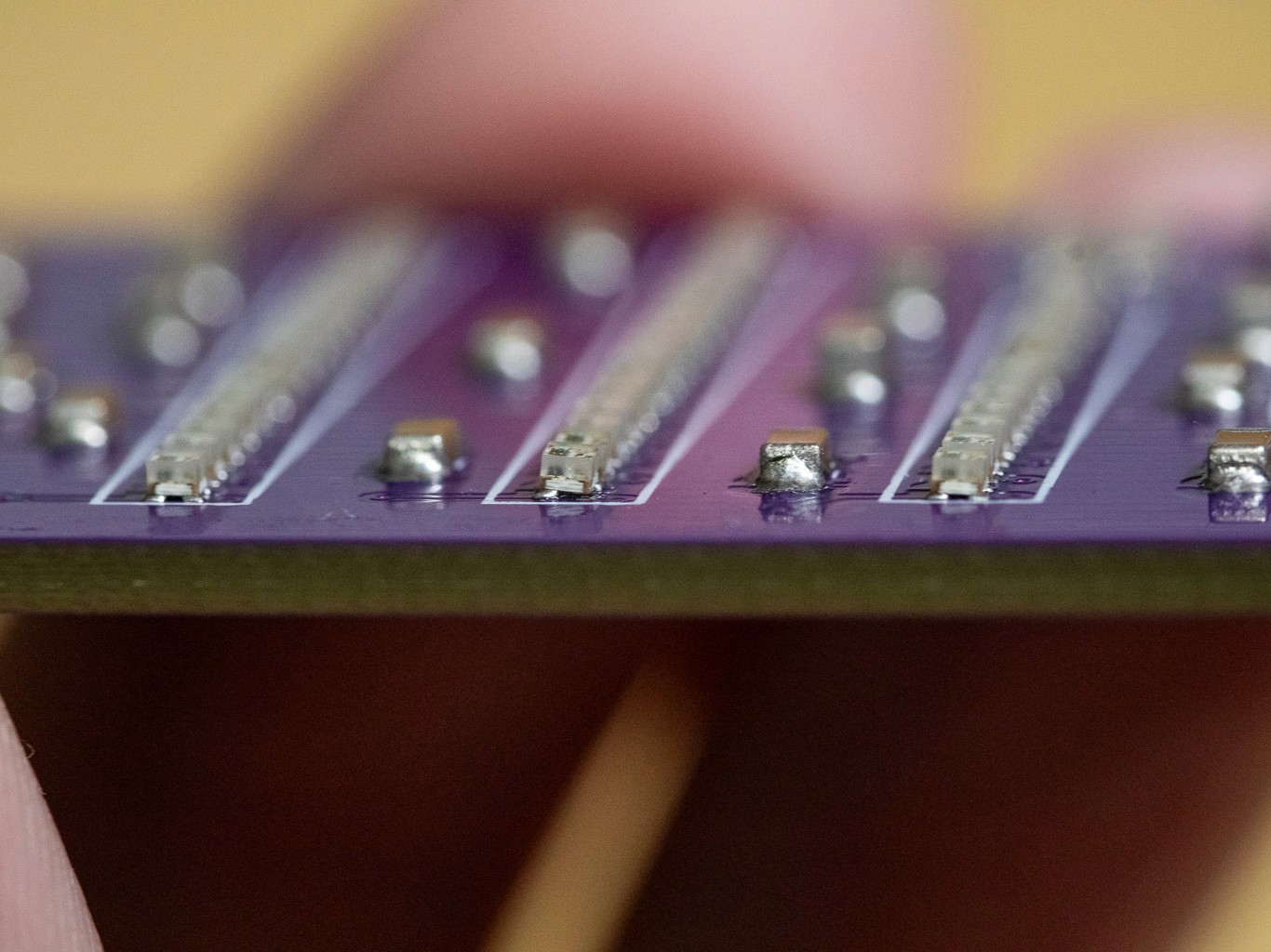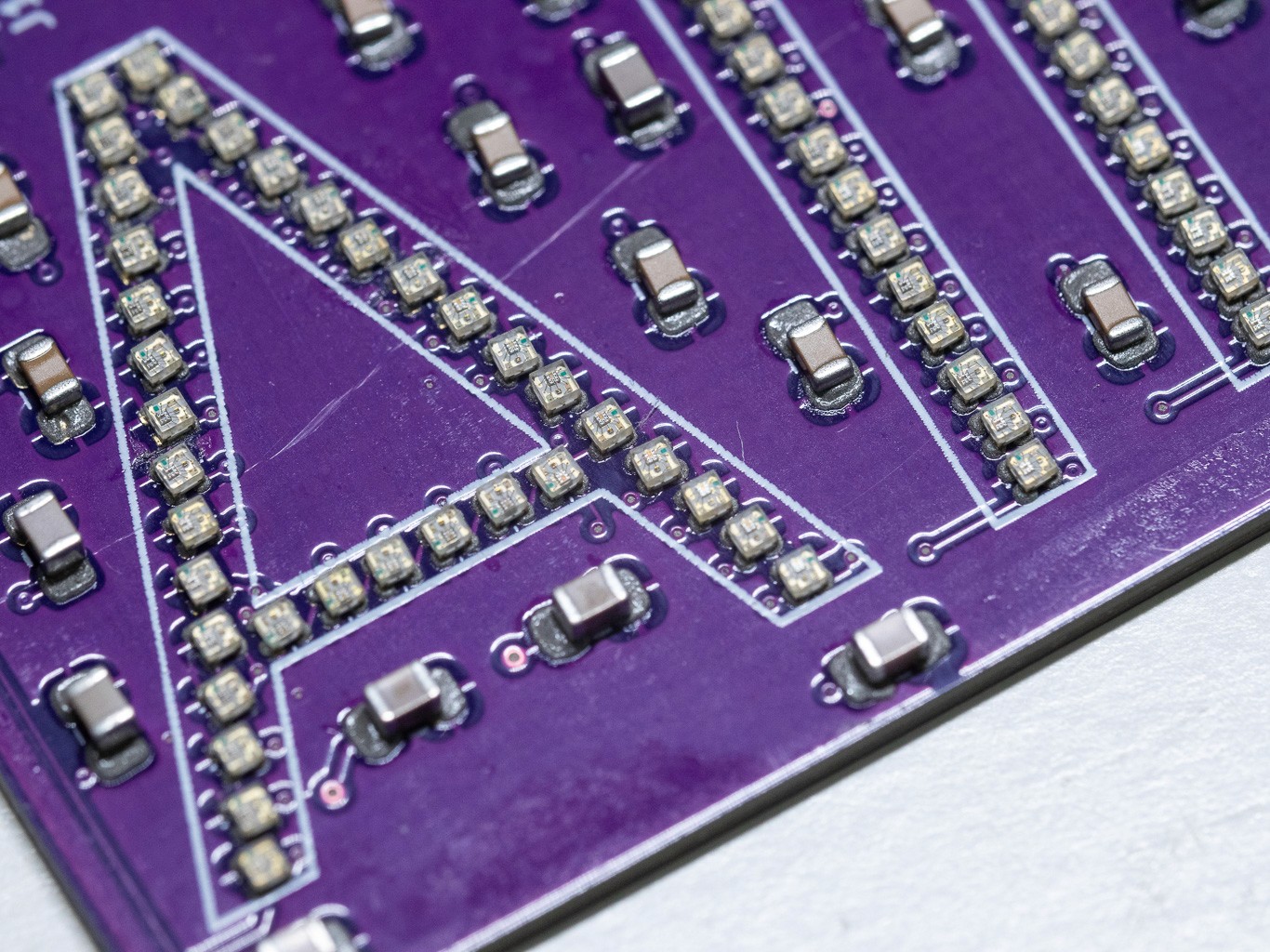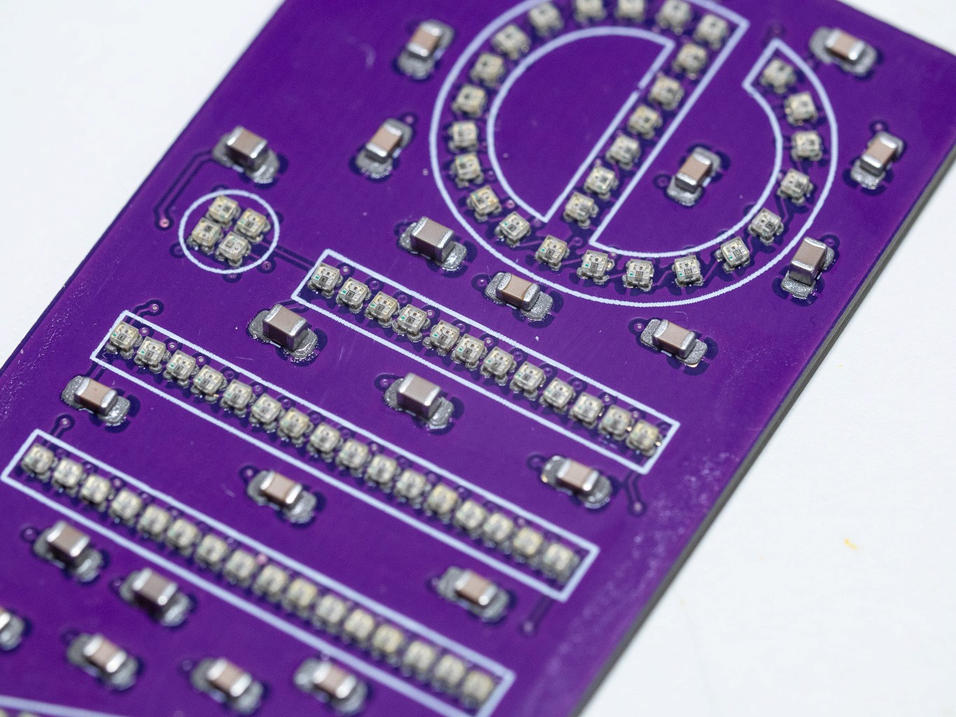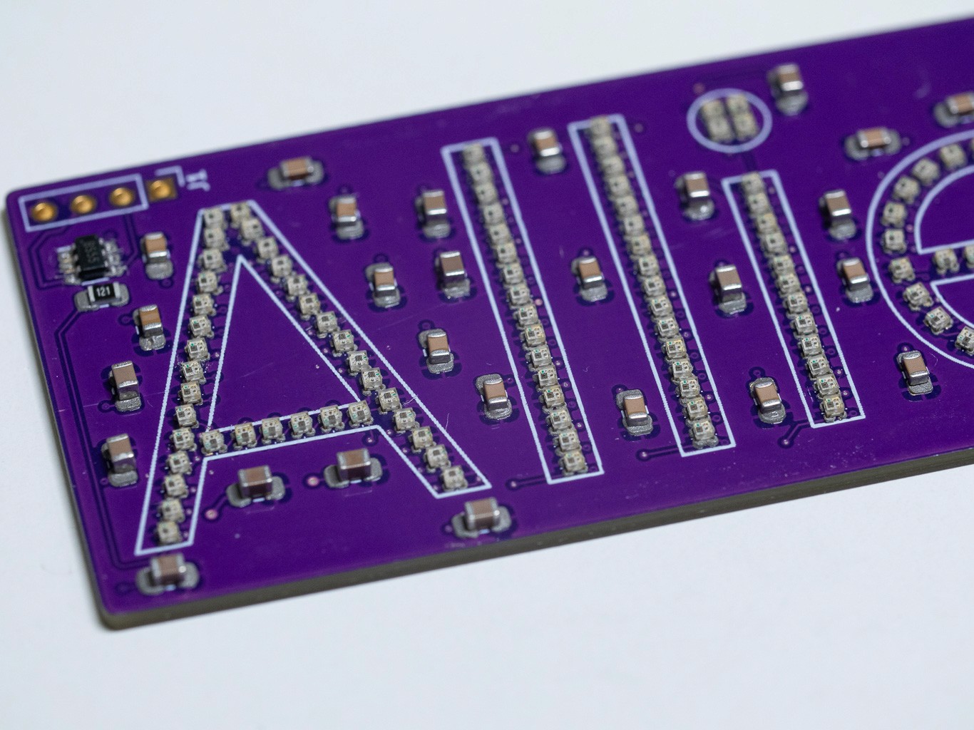 Manual Miniaturization: To achieve the resolution required to spell out a name, the LEDs needed to shrink. The intermediate iterations utilized pre-wired 1206 and 0805 LEDs, temporarily stabilized in Blu-tak while I painstakingly stripped and soldered microscopic wires by hand. While the result was visually successful, the manual labor was unsustainable and highly prone to failure, signaling the need for a better manufacturing approach.