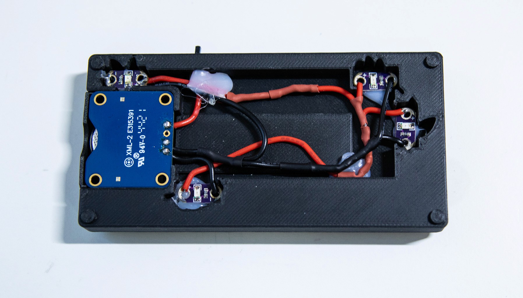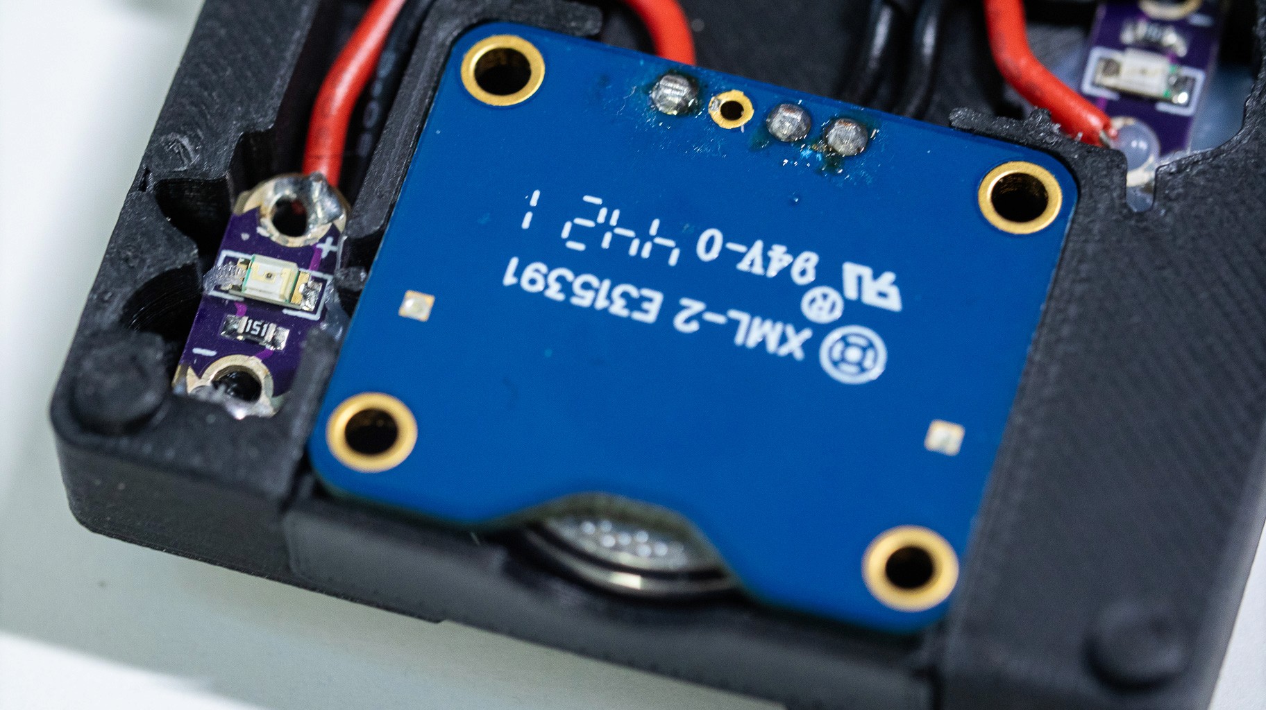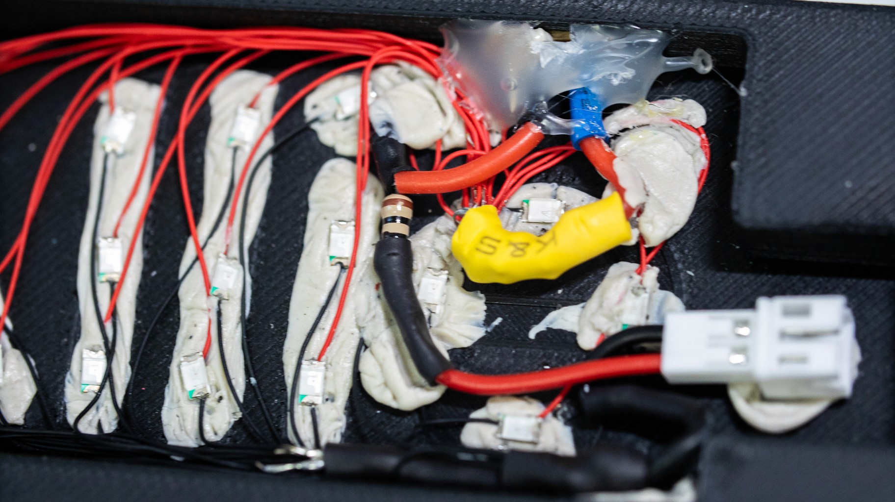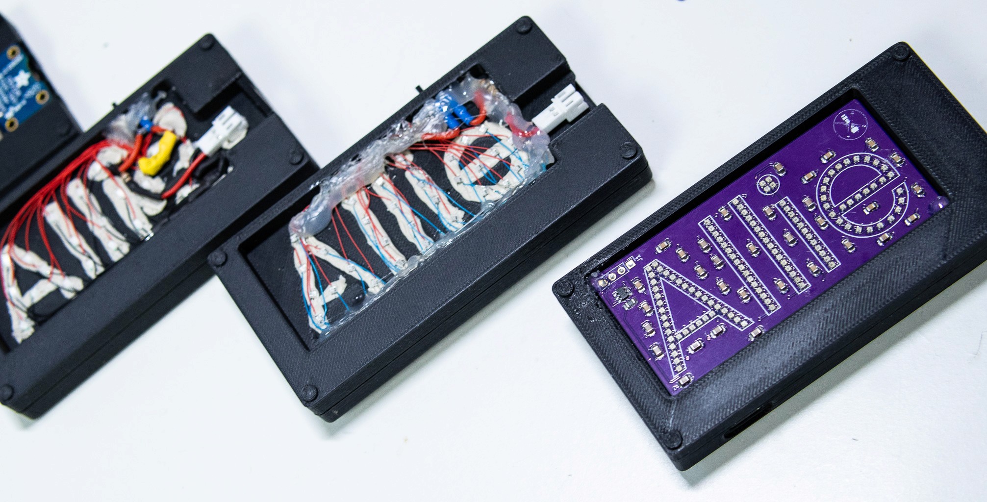 Component Miniaturization: Transitioning from bulky, pre-wired components to some of the smallest individually addressable LEDs on the market (1mm Xinglight LEDs) to achieve high-resolution text.