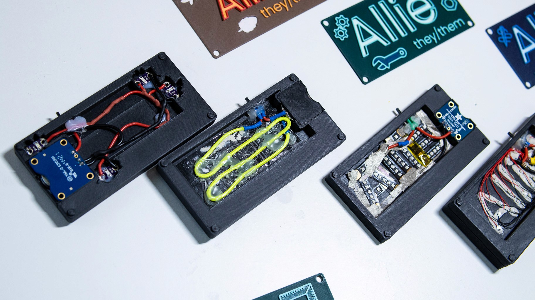 The Enclosure: The entire PCB assembly was engineered to slot perfectly into a sleek, custom-designed 3D-printed enclosure complete with customizable friction fit face plates, transforming the fragile circuitry into a durable, event-ready wearable that I now utilize regularly.